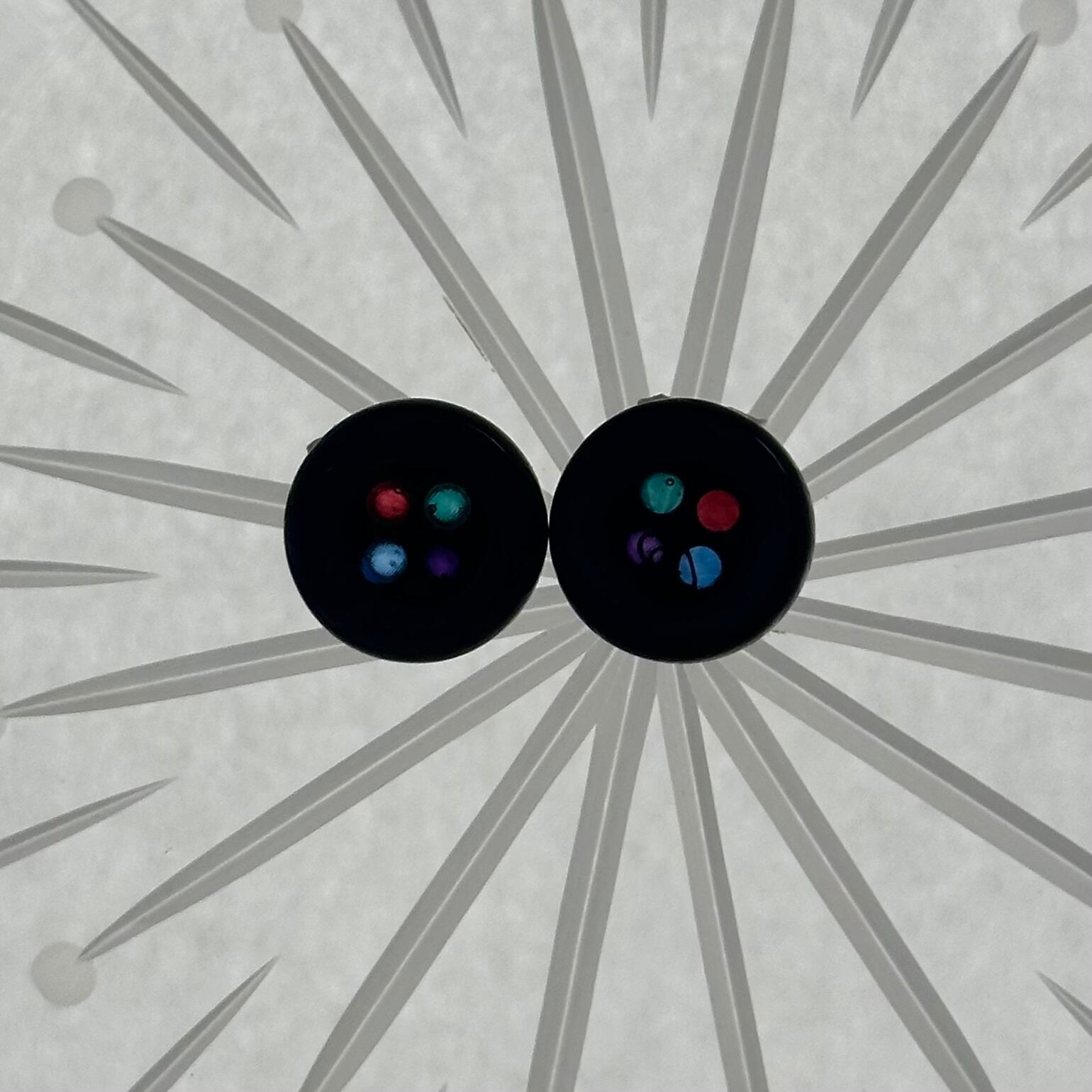 ボタンの穴に、色とりどりのレジンを流し込み、
